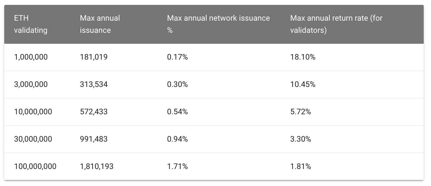 Le pourcentage de récompense accordé au validateur en fonctions du nombre d’Ether qui sont sous séquestre (stacké)
